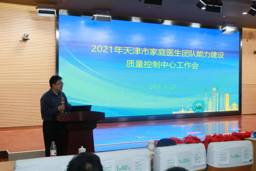 天津市家庭医生团队能力建设质量控制中心工作会于2021年3月25日在北辰医院报告厅举行,天津市卫生健康委基层卫生健康处处长郭宜鹏、副处长李刚出席会议。我校作为主委单位负责会议组织,王庆副校长出席并主持会议。质控中心全体委员及专家组成员,各区卫生健康委主管负责人,全科医学教育培训基地主管负责人等共计110余人参加会议。