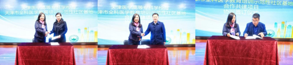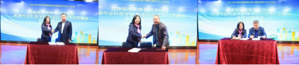 随后,刘主委代表学校与河东区大王庄街社区卫生服务中心、河西区陈塘庄街社区卫生服务中心、滨海新区杭州街道向阳社区卫生服务中心、滨海新区塘沽街解放路社区卫生服务中心、东丽区华明街社区卫生服务中心、东丽区军粮城社区卫生服务中心等六家基层医疗卫生机构签署合作共建协议。
