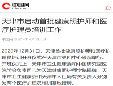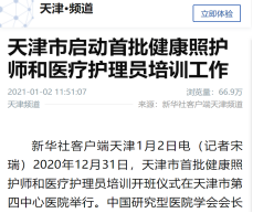 2019年7月26日,国家卫生健康委员会联合财政部、人力资源和社会保障部、国家市场监督管理总局、国家中医药管理局出台《关于加强医疗护理员培训和规范管理工作的通知》(国卫医发〔2019〕49 号),随后天津市卫生健康委员会、天津市人力资源和社会保障局、天津市财政局、天津市市场监督管理委员会4部门联合出台了《关于加强医疗护理员培训和规范管理工作的通知》(津卫医政〔2020〕637号),对我市医疗护理员的培训与管理提出了明确的要求。在市卫生健康委员会的直接领导和市人力资源和社会保障局的大力支持下,由我校牵头,会同天津市护理质控中心、天津市第四中心医院、泰达国际心血管病医院、天津市中健职业培训学校、天津市现代健康技术研究所、泰心康护(天津)健康管理有限公司等机构,开发医疗护理员培训标准、编写医疗护理员培训教材、开展师资培训,为培训的开展做了充分的准备。2020年2月,“健康照护师”作为新职业正式纳入我国职业分类大典;同年7月31日,天津市卫生健康委员会与中国研究型医院学会签署战略合作协议,标志健康照护师教育培训与服务管理项目落户天津;12月31日,国家首个“健康照护师学院”落户天津卫生职教集团,作为天津卫生职教集团牵头单位,我校将进一步从健康照护师的政策支持、培训培养、职业成长等方面进行积极探索,力争将我市打造成为健康照护师教育培训与服务管理示范区,在全国起到引领示范作用。