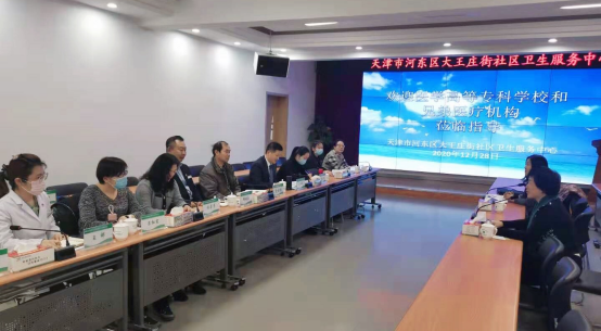 座谈会在河东区大王庄街社区卫生服务中心召开,继续教育处刘冬莹处长、阎渭清主任医师,河东区卫生健康委党委委员金晓强,项目成员单位中心主任及主管负责人参加会议。本项目的成员单位分别为河西区陈塘庄街社区卫生服务中心、滨海新区塘沽街解放路社区卫生服务中心、滨海新区杭州街道向阳社区卫生服务中心、东丽区华明街社区卫生服务中心、河东区大王庄街社区卫生服务中心。