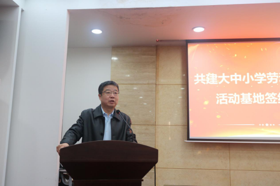 我校张彦文校长为本次签约仪式活动致辞。他首先对前来的两所学校的师生表示欢迎和感谢并期待这次友好的学习合作,随后张校长向大家介绍我校112年的建校史,在“双高”校建设中学校在打造人才培养技术高地上的具体做法和开展劳动教育的总体情况,最后,张校长希望三所学校今后进一步加强交流与联系,共建大中小学劳动教育实践活动深入化、常态化发展。