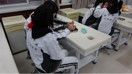 签约仪式结束后,北京师范大学附属中学的学生代表到我校急救实训室和针推实训室参加劳动实践活动。在急救实训室里,我校刘英老师为同学们传授心肺复苏的急救知识,同学们积极参与并踊跃进行实践。