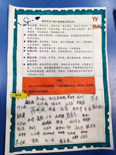 活动过程中,护理系学工支部各班召开了“文明修身”主题班会,在班会中,各班辅导员老师对文明行为进行主题宣讲。全体学生充分学习了在校期间的各项管理制度,以班级为单位制定、签署了《班级文明公约》。此外,各班还设立了“班级文明督察员”,对本班学生在校园、宿舍、教室等区域的不文明行为进行督查。