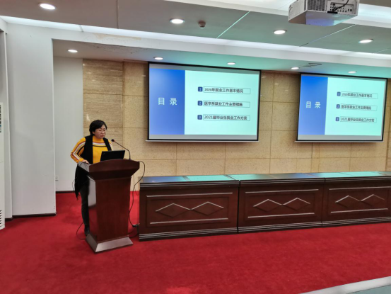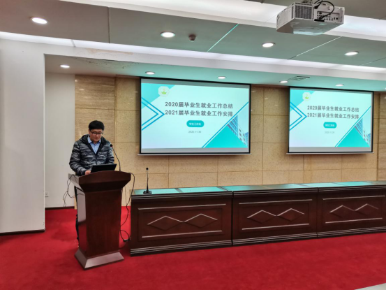 分管就业工作的校党委副书记、副校长左红在讲话中提出四点要求:一是在疫情防控常态化背景下,就业工作要未雨绸缪、提早动手,师生们要充分认识2021届毕业生就业工作的严峻性;二是强化责任,党政同责,齐抓共管,全员参与,全校上下共同努力,做好2021届毕业生就业工作;三是老师们要帮助学生端正就业观,增强就业信心,提升学生就业竞争能力;四是各部门要共同努力,多渠道、多途径、多领域拓宽就业渠道,为学生提供更多的就业岗位资源。