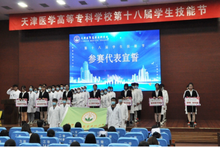 医疗技术系医疗设备应用技术1911班李名耀同学代表参赛选手发言,“疫情肆虐,无数医务工作者不分国界、不顾危险,逆行疫区。他们用“敬佑生命、救死扶伤、甘于奉献、大爱无疆”的崇高职业精神和精湛的专业技术捍卫人民生命健康。作为新时代未来医务工作者,我们有责任、有义务去坚守那份学医的初心,崇尚医德、勤学苦练,用真才实学担当起人民健康守护者。”同时代表全体参赛选手郑重宣誓:“以严肃认真的态度、勇于拼搏的精神、严谨求实的作风参加本次大赛,自觉服从裁判,将比赛当作砥砺奋进、提高技能的平台,赛出水平,赛出风格,勇创佳绩。”