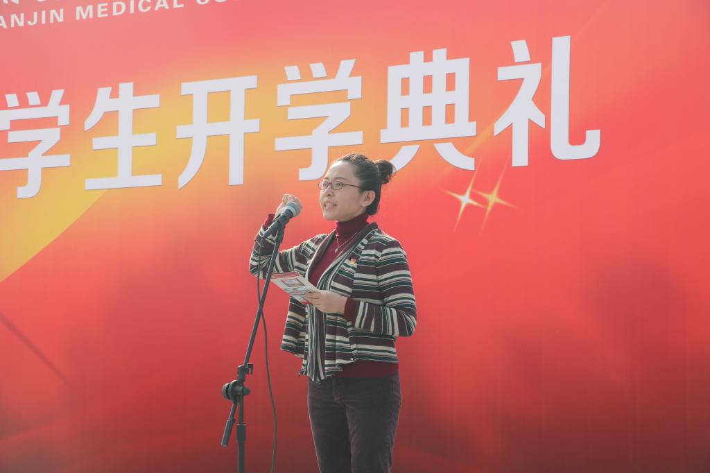 公共课教学部杜金蕊老师作为教师代表发言,她希望同学们要承担起医学生的责任,因为这“医学生”三个字是很有分量的。医学生在未来将担负着“救死扶伤、治病救人”的神圣职责和使命。要有家国情怀、要有责任担当。