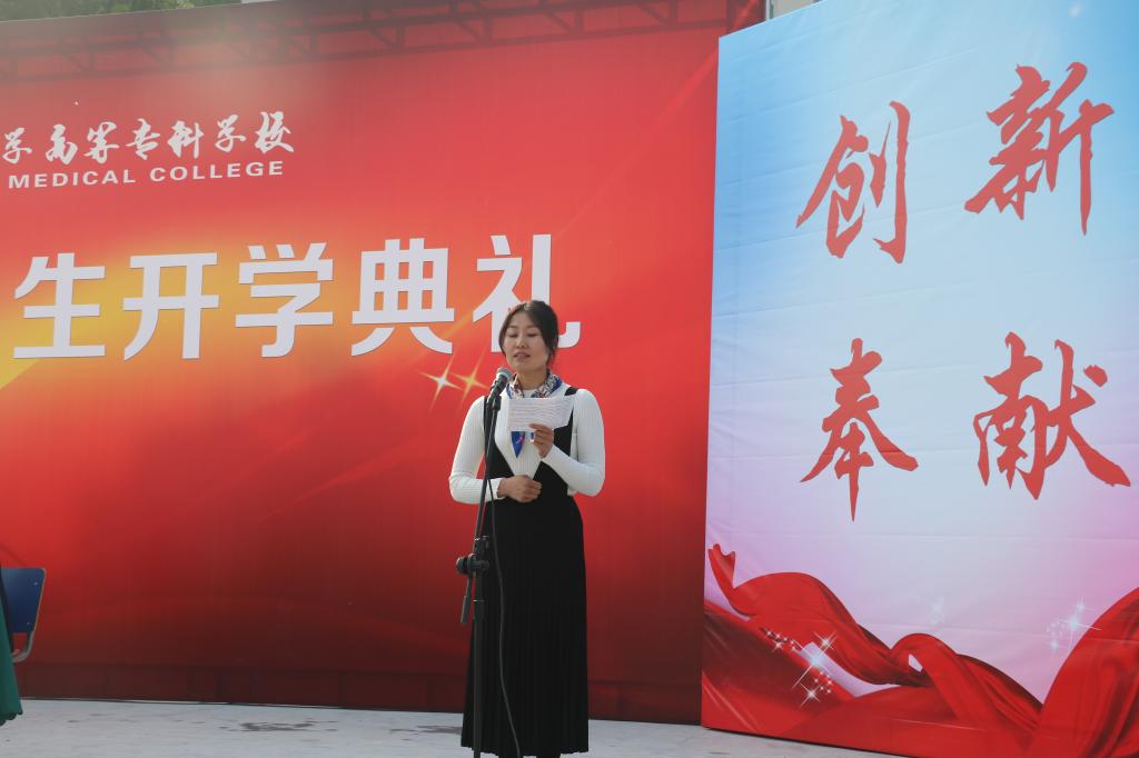 首先是护理系20206班徐艳红同学代表新生发言,她用自己的亲经历展示着医专学子的热情和活力。作为医专大家庭的新成员,她表示,会传承医专精神,秉承医学生的使命,勤学医学知识,勤练专业技能,勤修医学品德,真正做到有理想、有本领、有担当的医专人。