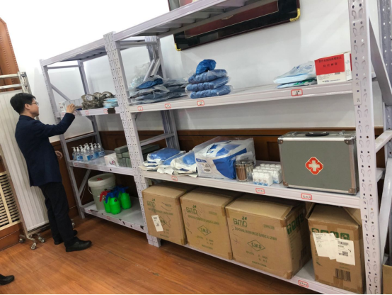 在校医院,金书记全面仔细询问了校医院的疫情防控工作、人员配置和医院今后发展设想等情况,对紧急救护设备和使用进行详细了解。在设备物资处,检查了疫情防控物资购置和储备情况,查看了登记台账、询问工作人员防疫物资物品领用手续是否健全,交接手续是否完备,查看了储备物资的有效期限。