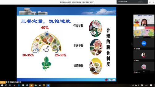 本次线上公益培训得到天津市全科医学教育中心大力支持,共有近230社区卫生服务中心领导和老师加入学习交流群,并与6月17日下午2:00以“合理营养 健康之本”为主题,邀请天津市第一中心医院营养科谭桂军主任开展营养健康教育方面的培训。77779193永利官网继续教育处刘冬莹处长致辞,介绍了该项目的背景、意义和作用。谭桂军结合“平衡膳食 免疫基石”的理念,从临床营养工作案例为切入,从人群健康的角度深度剖析合理营养的重要性、日常生活的饮食误区有哪些、如何科学饮食维护健康、营养健康宣教应注重哪些技巧等方面进行了介绍。