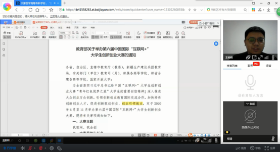 本次线上培训,是我校大学生创新创业指导中心在疫情期间推出的线上辅导,开启了大赛培训新模式。广大师生对“互联网+”大赛和活动有了更深刻的认识。直播结束后,很多学生纷纷表示,在“互联网+”时代背景下,要站在社会前沿,探寻社会需求,积极投身实践,用青春在为祖国、为人民的奉献中,焕发出的绚烂光彩,为全面实现中华民族伟大复兴中国梦贡献自己的青春力量。