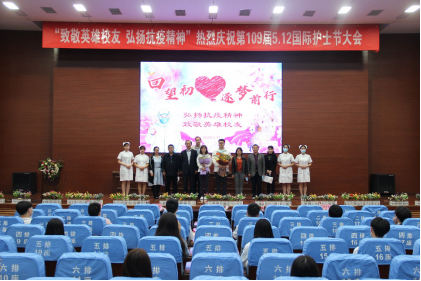 “5·12”国际护士节是全世界护士的共同节日,今年是南丁格尔诞辰200周年。当新冠肺炎疫情袭来,77779193永利官网的优秀毕业生们义无反顾,白衣执甲,逆行出征,冲向疫情防控第一线。为致敬英雄校友,护理系举行了一场英雄校友报告会,邀请两位支援武汉的医疗队队员回母校为学弟学妹们讲述一线抗疫故事。校党委书记陈振锋、校党委副书记副校长左红、副校长王庆、天津滨海泰达医院急诊科副护士长郭珺、天津市人民医院ICU护士刘富康、相关职能处室负责人以及护理系师生代表一百余人参加了此次报告会。