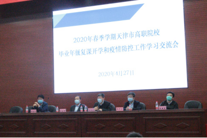2020年4月27日下午,2020年春季学期天津市高职院校毕业年级复课开学和疫情防控工作学习交流会在我校举行,市政府教育督导室督学闫国梁出席会议,我校党委书记陈振锋、校长张彦文、副校长郝建军、市教育两委体美劳处处长张健青、市教委两委督政处处长田青宇、袁伟老师和全市高职院校分管防疫工作校领导和有关部门负责同志参会。