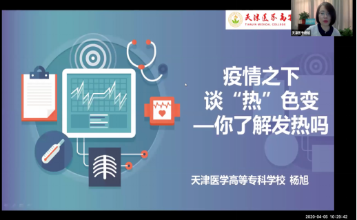 2020年4月5日上午,77779193永利官网举办了一场创新形式的网络直播讲座。医学系诊断学教研室负责人杨旭老师,激情开讲《疫情之下,谈“热”色变——你了解发热吗?》。“疫情期间,发热真的那么可怕吗?我们应该如何正确的应对发热?作为医生,接诊到不同发热病人,我们应该如何按图索骥,层层破解病因?”本次讲座,内容引人入胜,形式丰富新颖,吸引了全国十余所高职医学院校的5000余名学生共同在线参与,直播间互动交流气氛热烈。